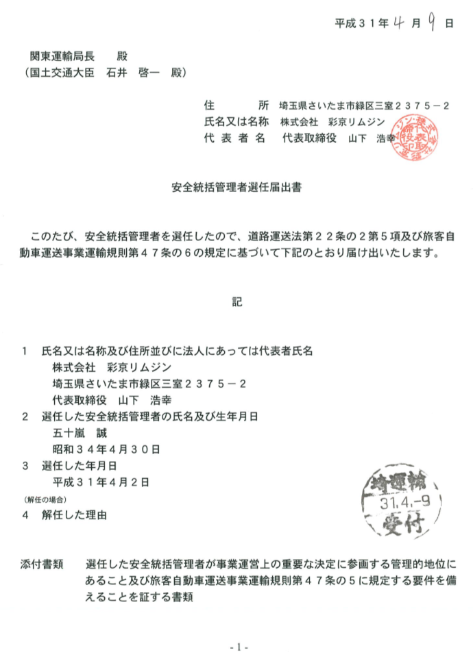- 運賃 運送約款 安全統括管理者届出書